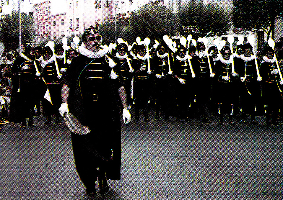 La cosa viene de antiguo. Desde que se instituyera la figura de la madrina en 1956. José Iglesias Estevan, cabo de la comparsa, al terminar la procesión, siempre comenzó sus habituales vueltas por muy variadas calles hasta dar con la casa de la madrina de turno. Y lo que en un principio no era más que un acompañamiento como el de otra madrina cualquiera, con el incremento de socios y el aliciente de las cucharas emparejadas que formaban un túnel por donde capitán, alférez y madrina tenían que pasar hasta llegar al domicilio, se convirtió en algo digno de ver y esperado por muchos.